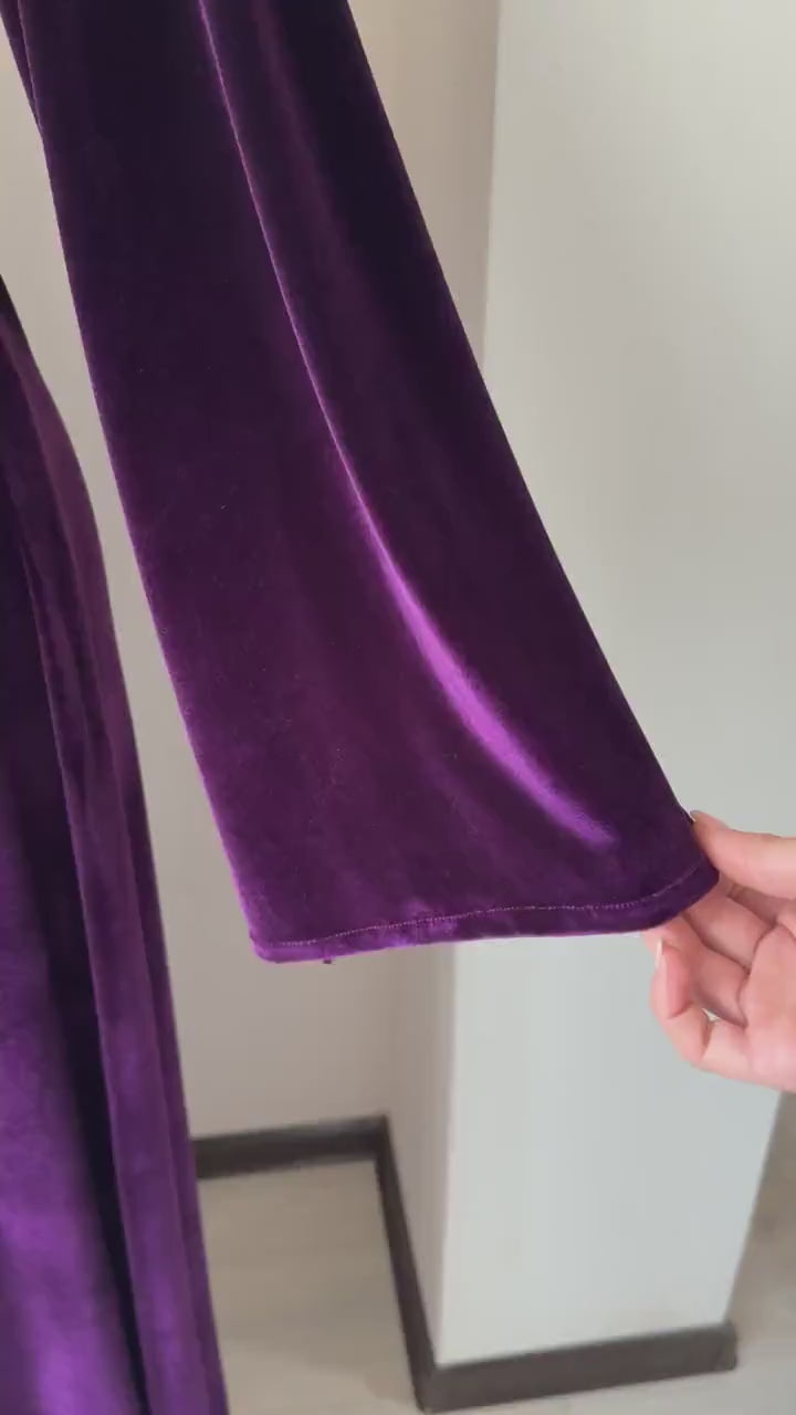 Luxury long purple velvet robe for women