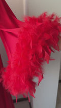 Elegant red feather robe with double sleeves Hollywood dressing gown